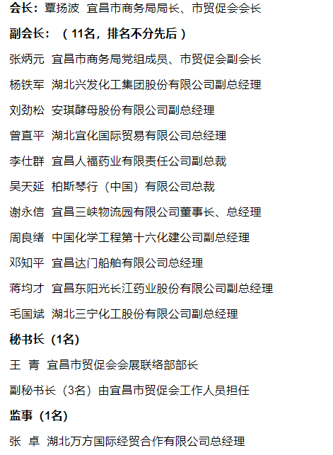 宜昌国际商会部分会员名单